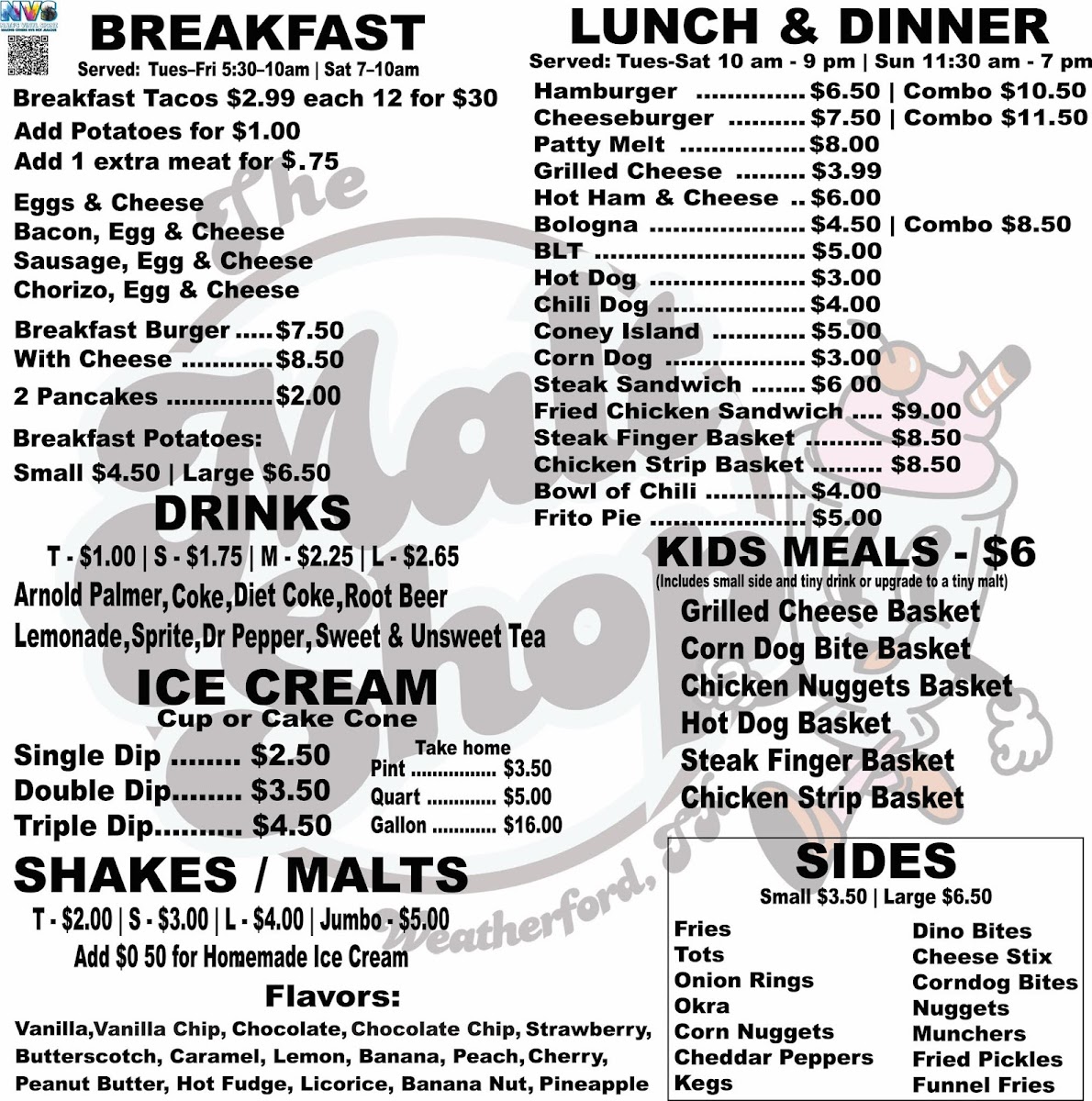 The Malt Shop Menu