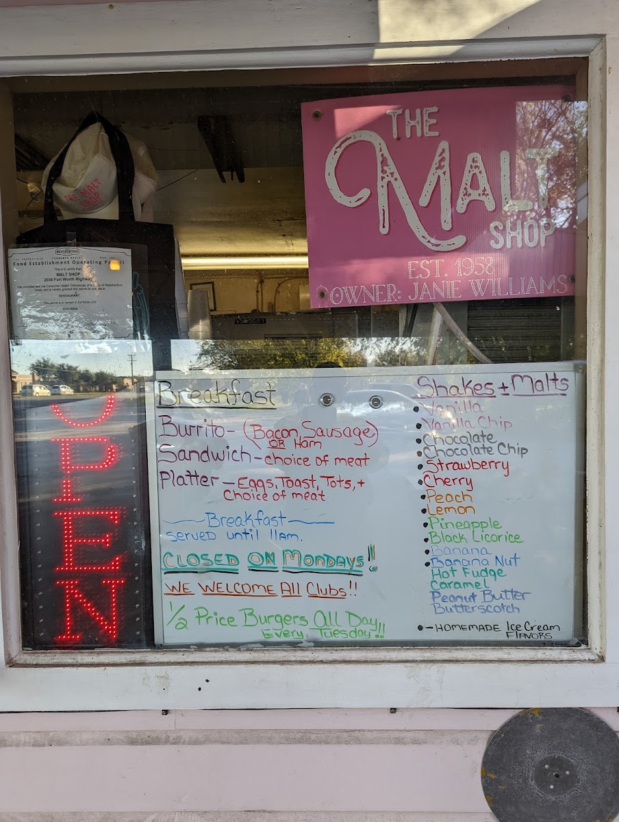 The Malt Shop offers a straightforward, nostalgic menu featuring casual bites and classic comfort drinks that fit perfectly with its relaxed, old-school vibe. Whether you're grabbing a quick breakfast taco in the morning or settling in for a late afternoon malt, the menu provides familiar favorites that feel both satisfying and approachable.